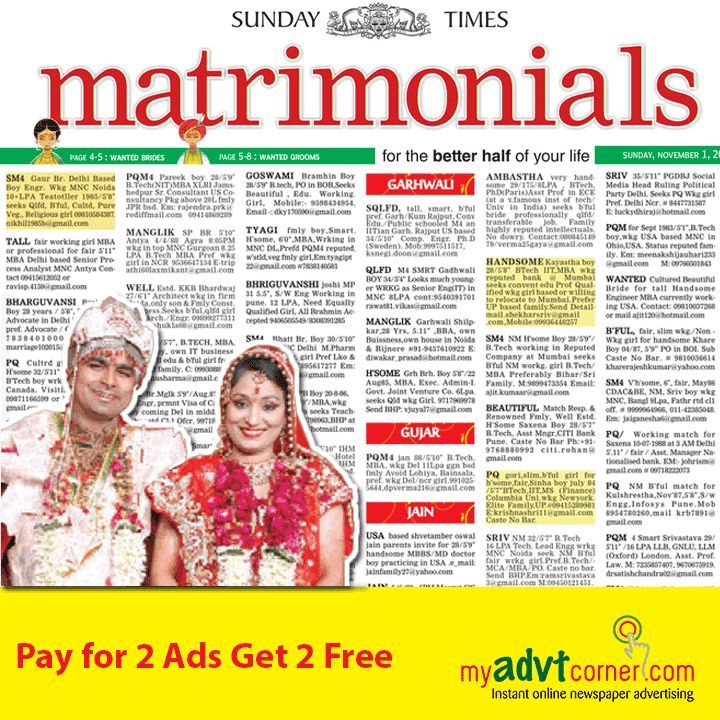 Choose a newspaper: Decide which newspaper you want to publish your matrimonial advertisement in. Select a newspaper that has a wide circulation and is popular in your area.