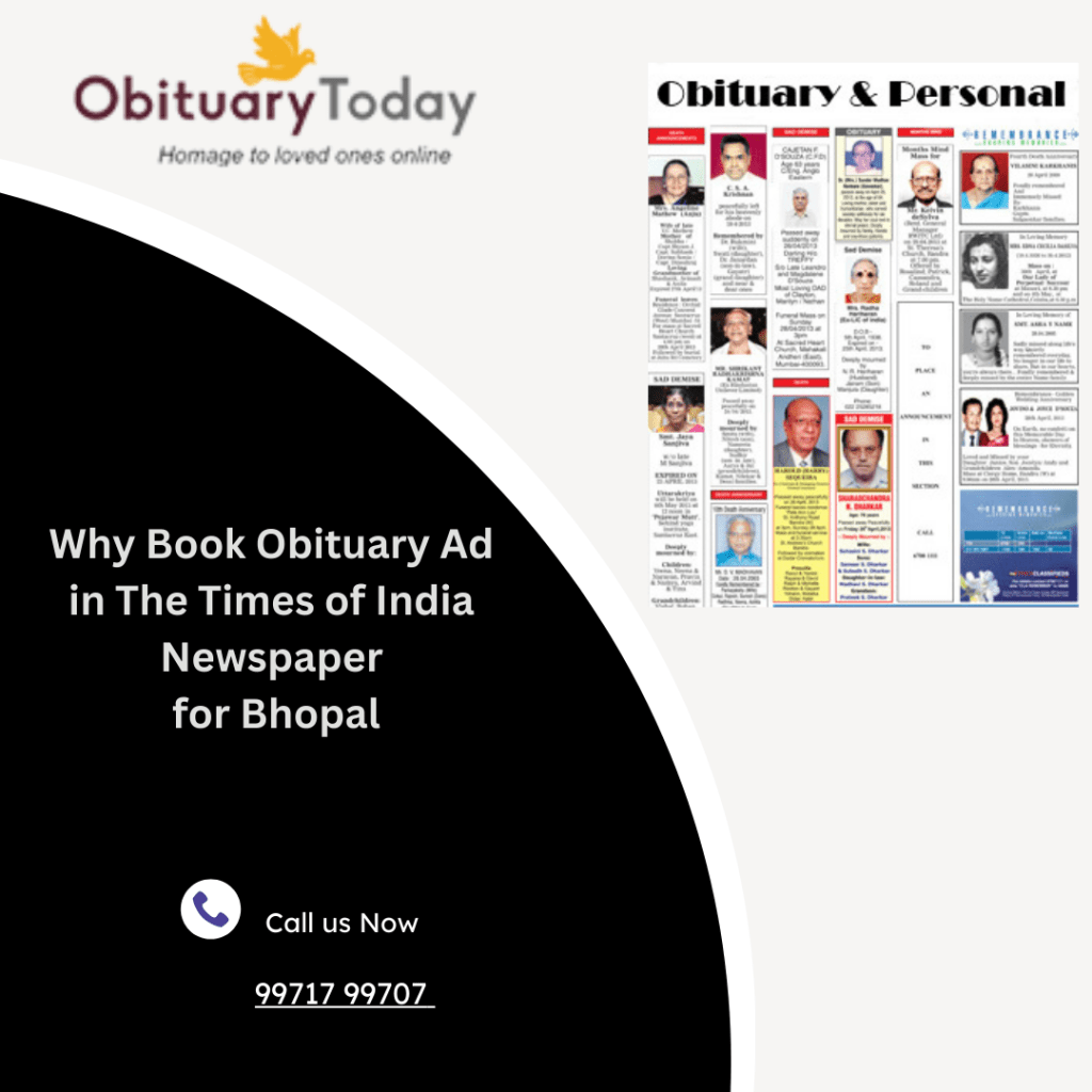 Booking an obituary advertisement in The Times of India newspaper for Bhopal serves as a respectful and widely recognized way to announce the passing of a loved one. This platform allows you to inform a broader audience about the demise, share memorial service details, and express condolences. Here’s why you might consider booking such an advertisement: